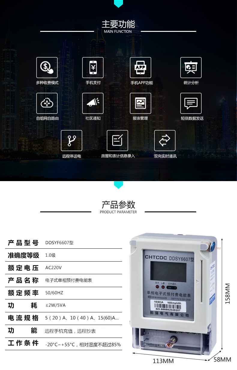 主要特點:wifi聯網,應用計算機管理,先購(gòu)電後用電;在額定電流範圍內能限製(zhì)最大使(shǐ)用功率(由供電部門限(xiàn)定);短(duǎn)信通知或自動斷電告(gào)警用戶購電;電量為零時,自動拉閘斷電;並具有(yǒu)一定的防竊電(diàn)軟(ruǎn)件設計(jì)等。