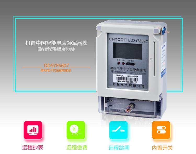 產品符合GB/T17215.321-2008《1級和2級靜止(zhǐ)式交流有功電能表》和GB/T 18460.3-2001 《IC卡預(yù)付費售(shòu)電係統第3部(bù)分:預付費電能(néng)表》的全部(bù)技術要求。本(běn)儀表符合GB/T 17215.321-2008和 485通訊 DL/T 645-1997/2007標(biāo)準。具有485跟紅外通訊,遠程拉合閘斷電(diàn)送電,遠程(chéng)充值,遠程抄表,無需連線,電(diàn)表安裝好連接wifi即可遠程控製。
