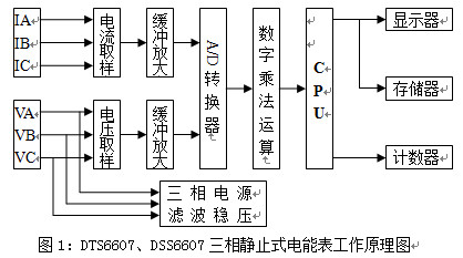 DTS6607、DSS6607型(xíng)三相靜止式電能表工作原理如圖1所示。