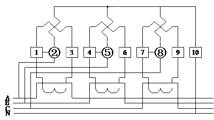 DSS6607型三相(xiàng)四線經(jīng)電流互感器接線圖(圖(tú)4.3)