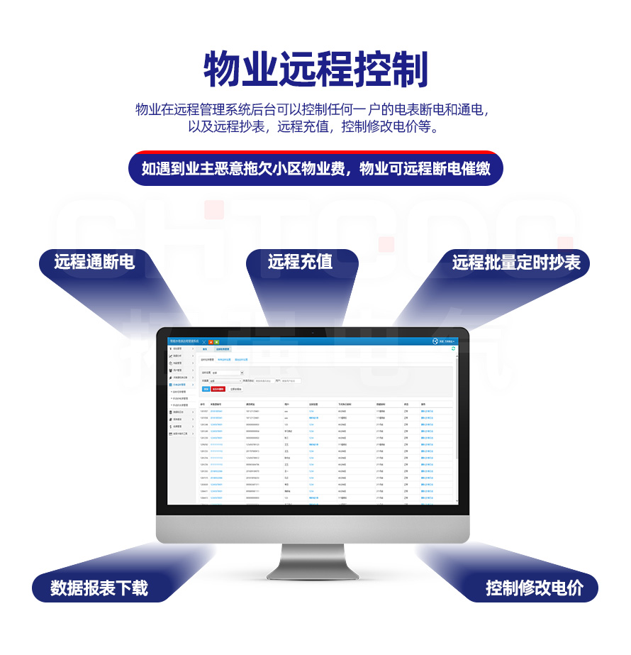 由計算(suàn)機管理信息係統,通過IC卡(kǎ)讀寫器,寫入(rù)一定電量和監控要求的IC卡輸入表內(nèi)微處理器係統,經CPU運算後,提供顯示、報警、切(qiē)斷狀態信號。