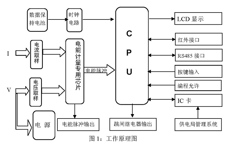 由計算機管理信息係統,通過IC卡讀寫器,寫入一定電量和監控要求的IC卡輸入表內微處理器係統,經CPU運算後,提供顯示、報警、切斷狀態信號。